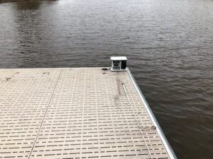 Er is zeer zorgvuldig gekeken naar montagemogelijkheden van deze ‘laseropgans’ en helaas is hiervoor geen andere locatie mogelijk dan op de hoeken van het vlot. Voor de boten die aanleggen en wegvaren kunnen deze apparaten een obstakel vormen. Let dus op wanneer je aanlegt of wegvaart dat je deze apparaten niet raakt.